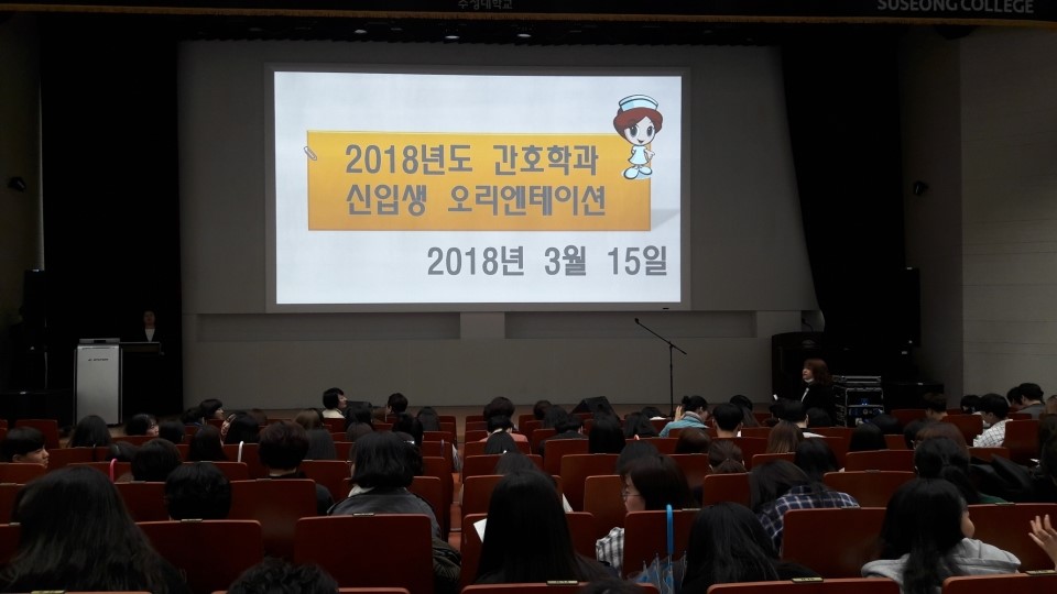 2018년 3월 15일 신입생 오리엔테이션 페이지 정보 작성자 간호학과 댓글 0건 조회 820회 작성일 18-03-29 11:50 목록 본문 2018학년도에 입학한 간호학과 1학년 여러분 다시한번 환영합니다. 이전글2018년 3월 23~24일 간호학과 Membership Training 18.04.03 다음글2018년 2월 28일 간호학과 18학번 신입생 입학식 18.03.29