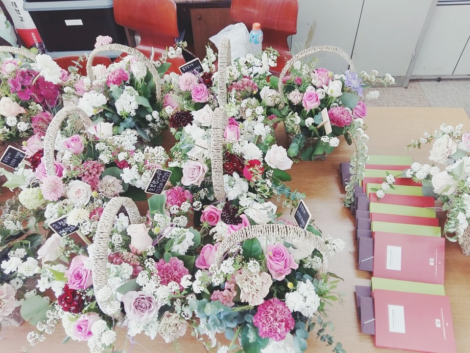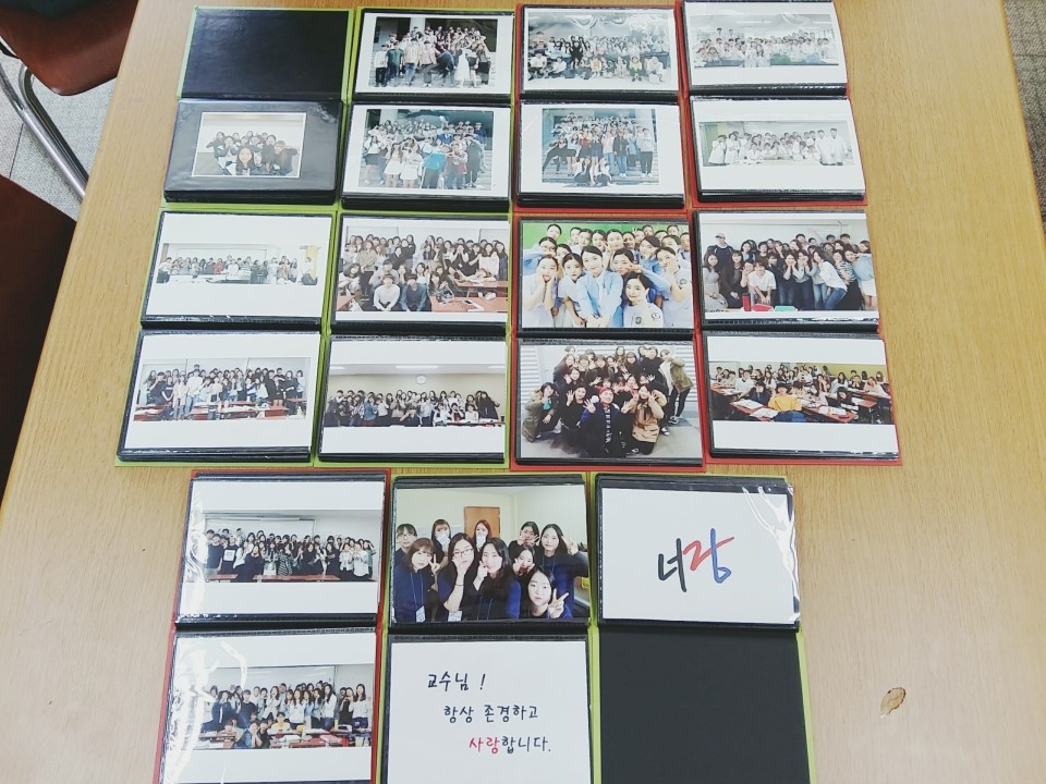 교수님들께 감사한 마음을 담아 준비한 꽃과 상품권이랑 1,2,3,4학년 단체사진!