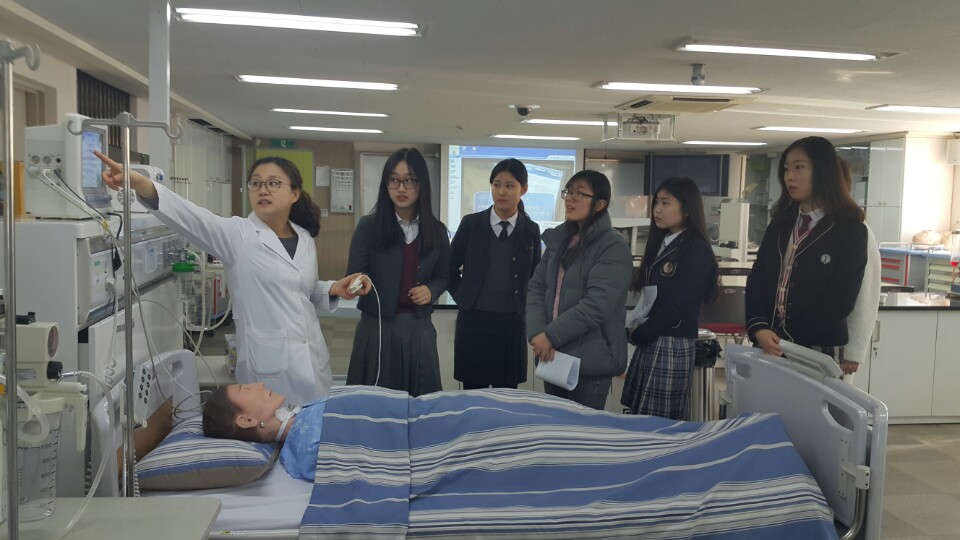 실습실 물품으로 직접 실습을 해 보고 있는 모습