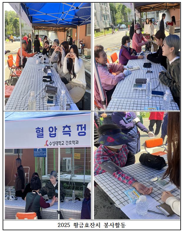 2025 황금효잔치 봉사활동 페이지 정보 작성자 간호학과 댓글 0건 조회 118회 작성일 25-11-13 17:32 목록 본문 1. 행사명: 2025 황금효잔치 봉사활동2. 일 시: 2025. 05. 07.(수) 09:00~12:003. 장 소: 황금종합사회복지관(대구시 수성구 소재) 이전글2025 술래잡기 동아리 절주캠페인 25.11.13 다음글2025 학교현장실습 사전프로그램(교직) 25.11.13