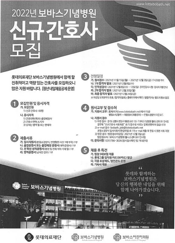 2022 보바스기념병원 신규간호사 채용 안내 페이지 정보 작성자 간호학과 댓글 0건 조회 1,389회 작성일 21-10-29 14:56 목록 본문 이전글2022 푸른병원 신규간호사 채용 안내 21.10.29 다음글2022 제주한라병원 신규간호사 채용 안내 21.10.29
