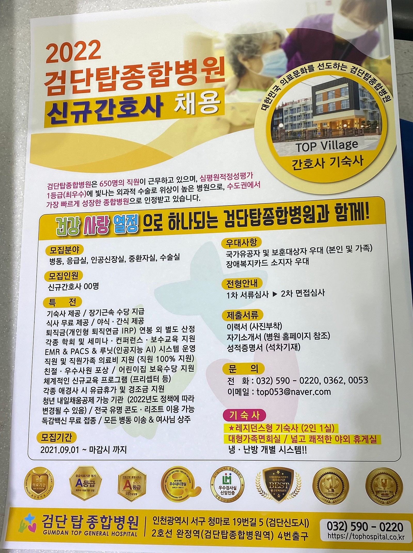 2022 검단탑종합병원 신규간호사 채용 안내 페이지 정보 작성자 간호학과 댓글 0건 조회 1,324회 작성일 21-09-29 13:57 목록 본문 이전글2022 영남대학교영천병원 직원 채용 안내 21.10.01 다음글2022 대우병원 신규간호사 채용 공고 21.09.27