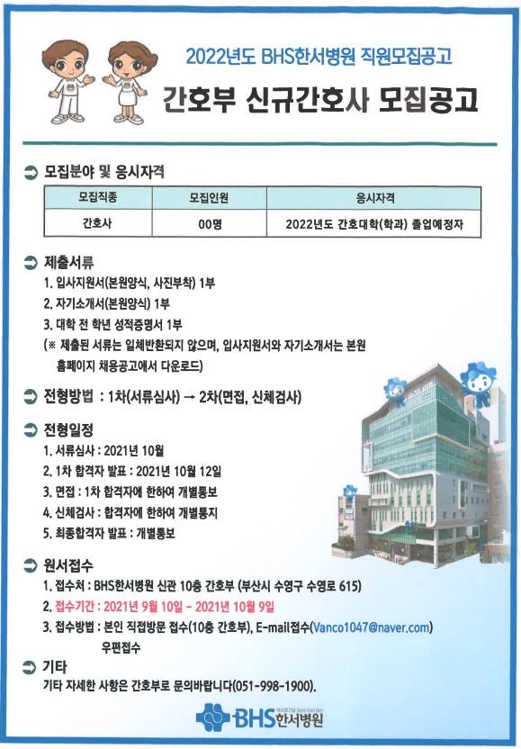 2022 BHS 한서병원 신규간호사 채용 안내 페이지 정보 작성자 간호학과 댓글 0건 조회 1,353회 작성일 21-09-15 10:33 목록 본문 이전글2022 에스포항병원 신규간호사 채용 안내 21.09.15 다음글2022 부평세림병원 신규간호사 채용 안내 21.09.15