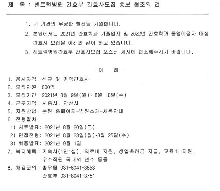 2022 센트럴병원 간호사모집 채용 안내 페이지 정보 작성자 간호학과 댓글 0건 조회 1,615회 작성일 21-08-02 19:03 목록 본문 이전글2022 삼백의료재단 상주성모병원 신규간호사 채용 안내 21.08.02 다음글2022 가톨릭대학교 대전성모병원 신규간호사 채용 안내 21.07.21