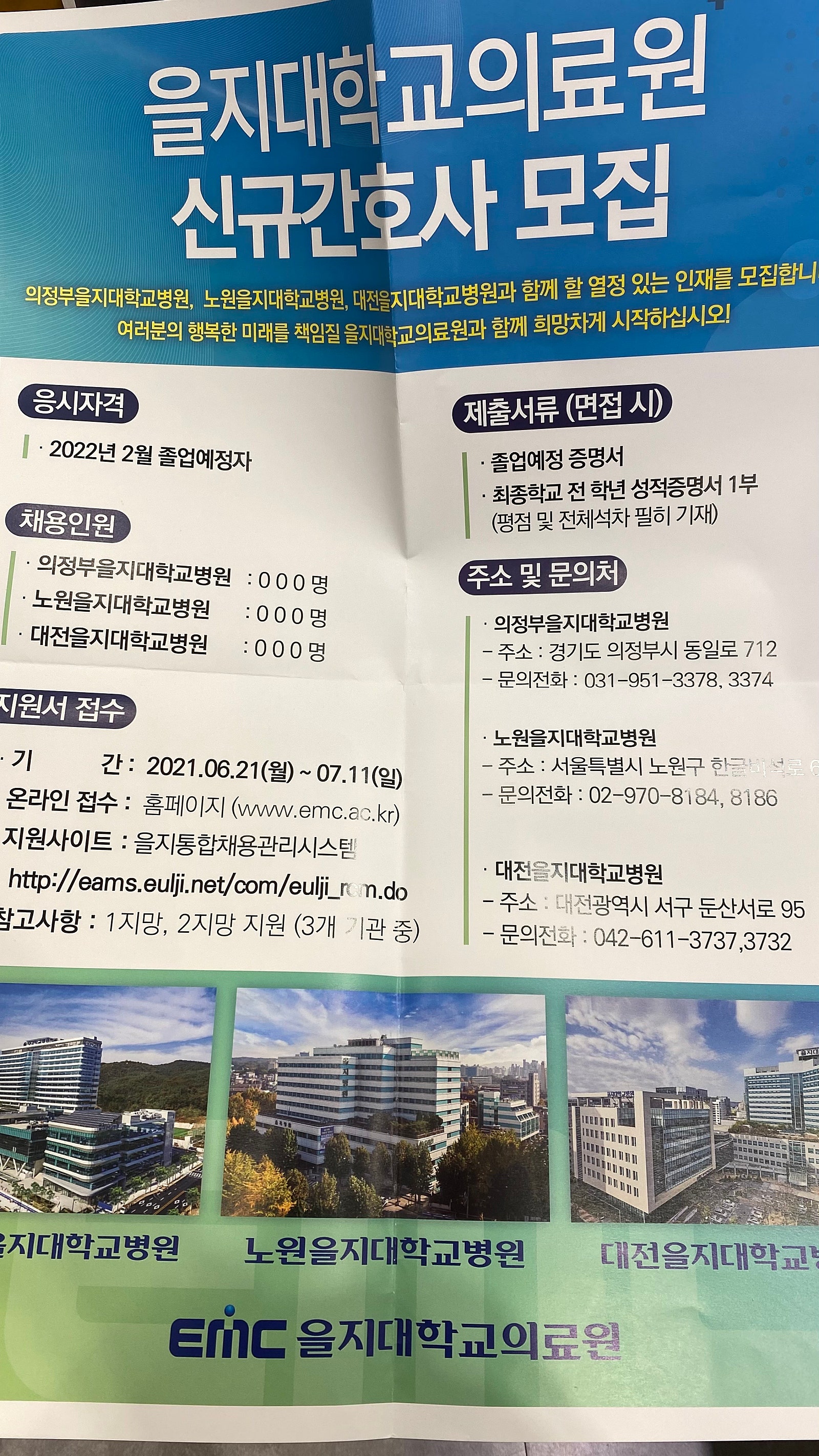 2022 을지대학교의료원 신규간호사 모집 안내 페이지 정보 작성자 간호학과 댓글 0건 조회 1,815회 작성일 21-05-21 16:23 목록 본문 이전글2022 연세대학교 의료원(세브란스병원신촌 및 강남세브란스병원) 신규간호사 채용 안내 21.05.27 다음글2022 당진종합병원 채용 안내 21.05.21