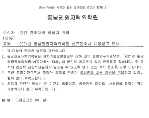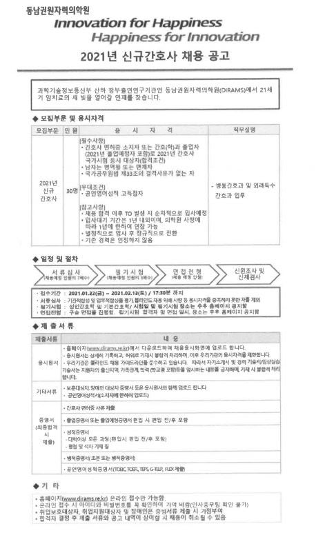 2021 동남권원자력의학원 신규간호사 채용 공고 페이지 정보 작성자 간호학과 댓글 0건 조회 1,892회 작성일 21-02-02 11:51 목록 본문 이전글2021 나사렛종합병원 신규간호사 채용 공고 21.02.05 다음글2021 세림병원 신규간호사 2차 채용 공고 21.01.28