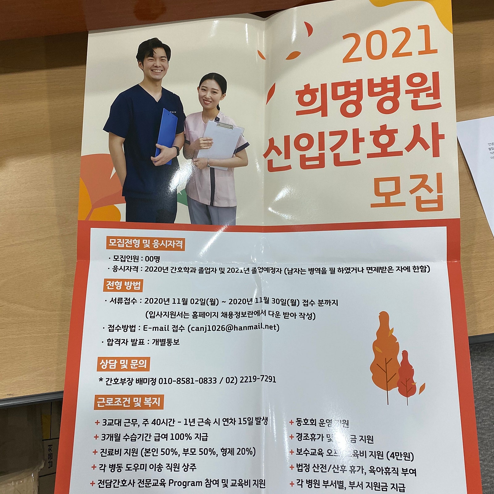 2021 희명병원 신규간호사 채용 공고 페이지 정보 작성자 간호학과 댓글 0건 조회 2,008회 작성일 20-11-16 18:18 목록 본문 이전글2021 나사렛종합병원 신규간호사 채용 공고 20.11.19 다음글2021 청아의료재단 동서병원, 청아병원 신규간호사 채용 공고 20.11.16