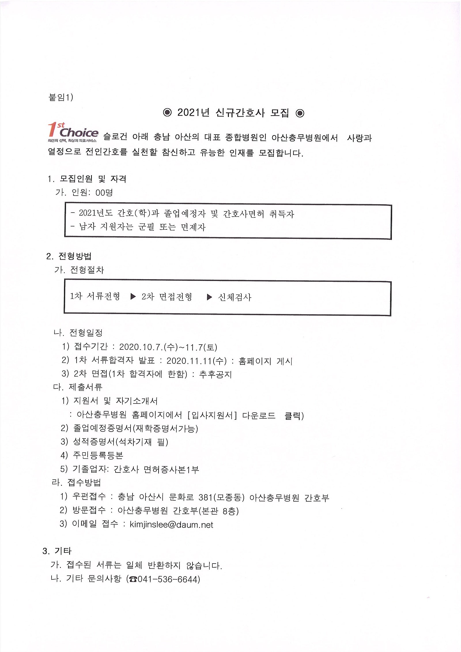 2021 아산충무병원 신규간호사 채용 공고 페이지 정보 작성자 간호학과 댓글 0건 조회 1,883회 작성일 20-10-15 16:42 목록 본문 이전글2021 천안충무병원 신규간호사 2차 모집 안내 20.10.19 다음글2021 안동의료재단 신규간호사 모집 공고 20.10.15