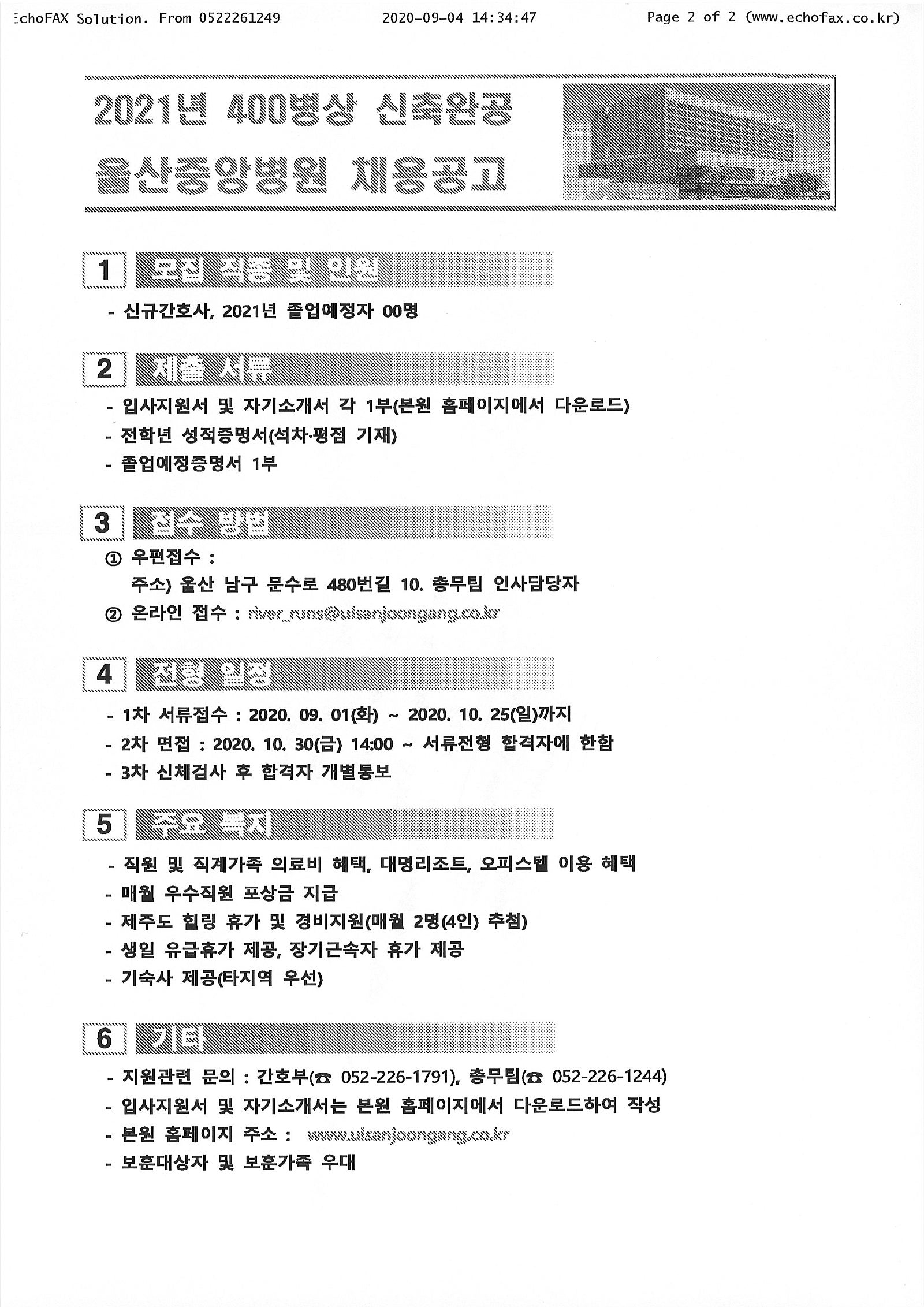 2021 울산중앙병원 신규간호사 채용 공고 페이지 정보 작성자 간호학과 댓글 0건 조회 1,938회 작성일 20-09-04 16:36 목록 본문 이전글2021 동국대학교 경주병원 신규 간호사 채용 공고 20.09.07 다음글2021 봉생병원 신규간호사 모집 공고 20.09.04