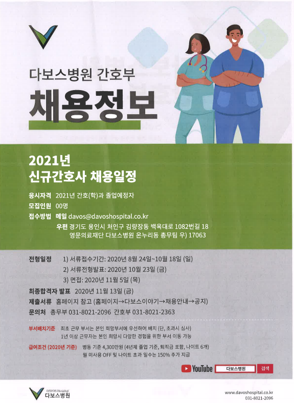 2021 다보스병원 신규간호사 채용 공고 페이지 정보 작성자 간호학과 댓글 0건 조회 1,840회 작성일 20-08-14 10:51 목록 본문 이전글2021 의료법인 동강의료재단 신규간호사 채용 공고 20.08.14 다음글2021 세명기독병원 1차 신규간호사 채용 공고 20.08.12