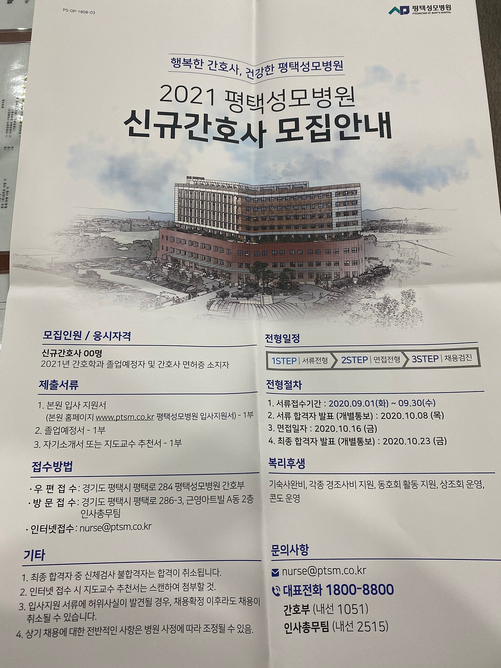 2021 평택성모병원 신규간호사 채용 공고 페이지 정보 작성자 간호학과 댓글 0건 조회 1,960회 작성일 20-08-19 15:13 목록 본문 이전글2021 부산성모병원 신규간호사 채용 공고 20.08.19 다음글2021 성세의료재단 뉴 성민병원 신규간호사 채용 공고 20.08.19