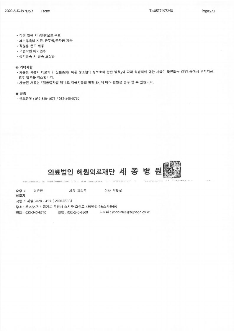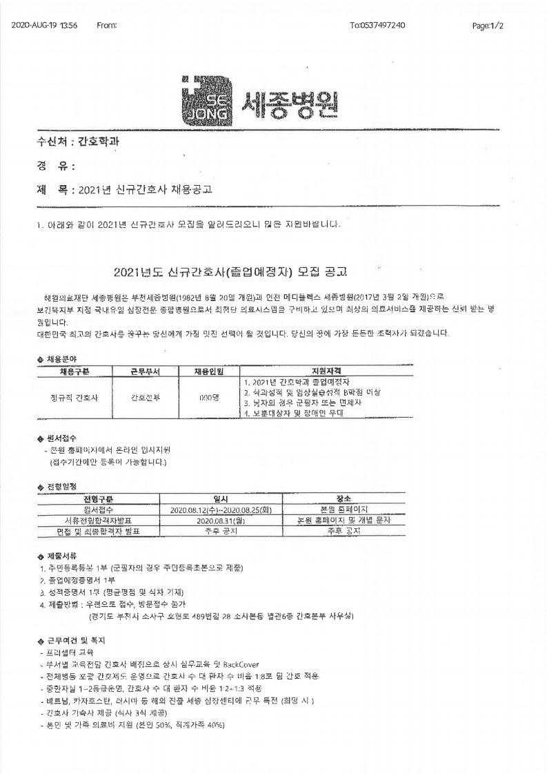 2021 세종병원 신규간호사 채용 공고 페이지 정보 작성자 간호학과 댓글 0건 조회 1,789회 작성일 20-08-20 09:17 목록 본문 이전글2021 을지대학교의료원 신규간호사 채용 공고 20.08.20 다음글2021 부산성모병원 신규간호사 채용 공고 20.08.19