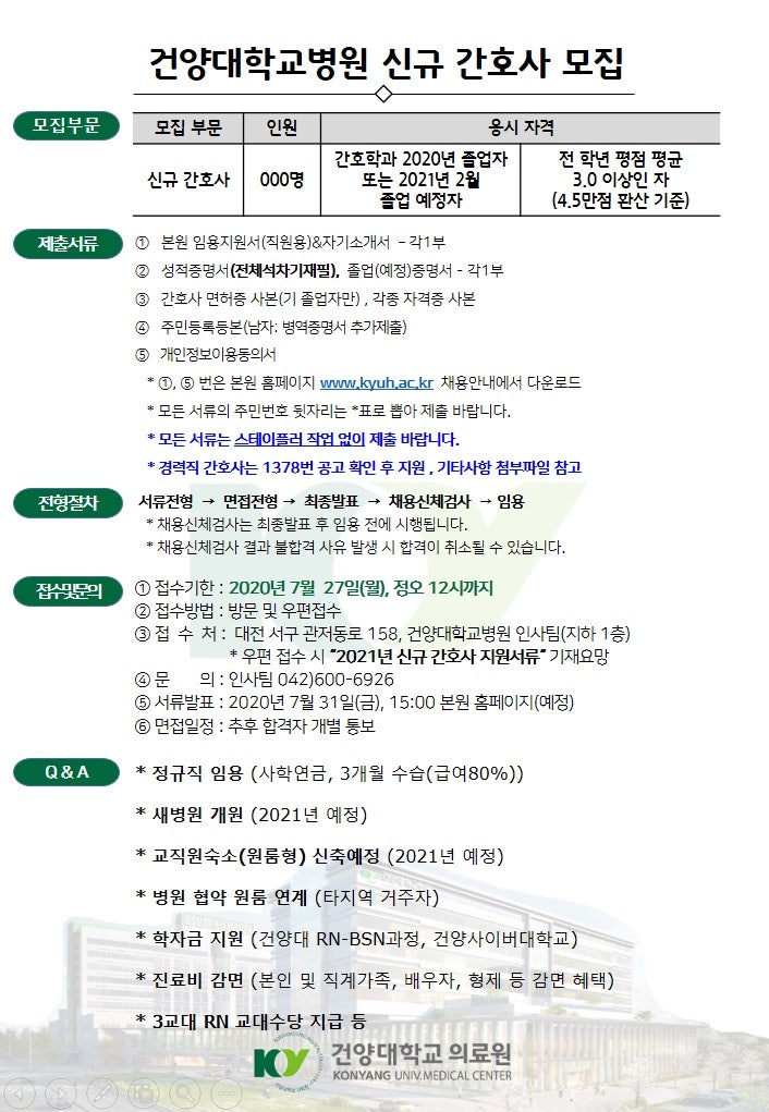 2021 건양대학교병원 신규 간호사 모집 공고 페이지 정보 작성자 간호학과 댓글 0건 조회 2,055회 작성일 20-07-17 13:39 목록 본문 이전글2021 가톨릭대학교 대전성모병원 신규간호사 채용 공고 20.07.17 다음글2021 대구가톨릭대학교 신규간호사 모집 공고 20.07.17