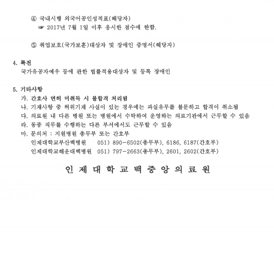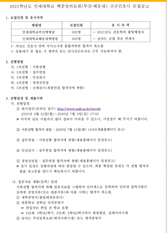 2021 인제대학교 백중앙의료원(부산.해운대) 신규간호사 모집 공고 페이지 정보 작성자 간호학과 댓글 0건 조회 2,428회 작성일 20-06-22 11:28 목록 본문 이전글2021 안동의료재단 신규간호사 모집 공고 20.07.01 다음글2021 안양샘병원 신규/경력간호사 채용 공고 20.06.15