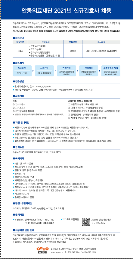 2021 안동의료재단 신규간호사 채용 공고