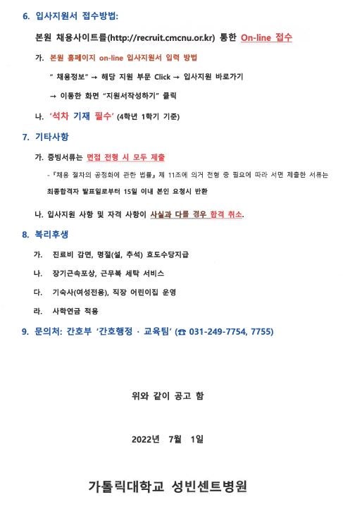 2023 가톨릭대학교 성빈센트병원 신규 간호사 모집 안내 페이지 정보 작성자 간호학과 댓글 0건 조회 1,319회 작성일 22-06-30 13:38 목록 본문 이전글2023 건양대학교의료원 간호사 모집 안내 22.06.30 다음글2023 메리놀병원 신규간호사 정규직 채용 안내 22.06.29